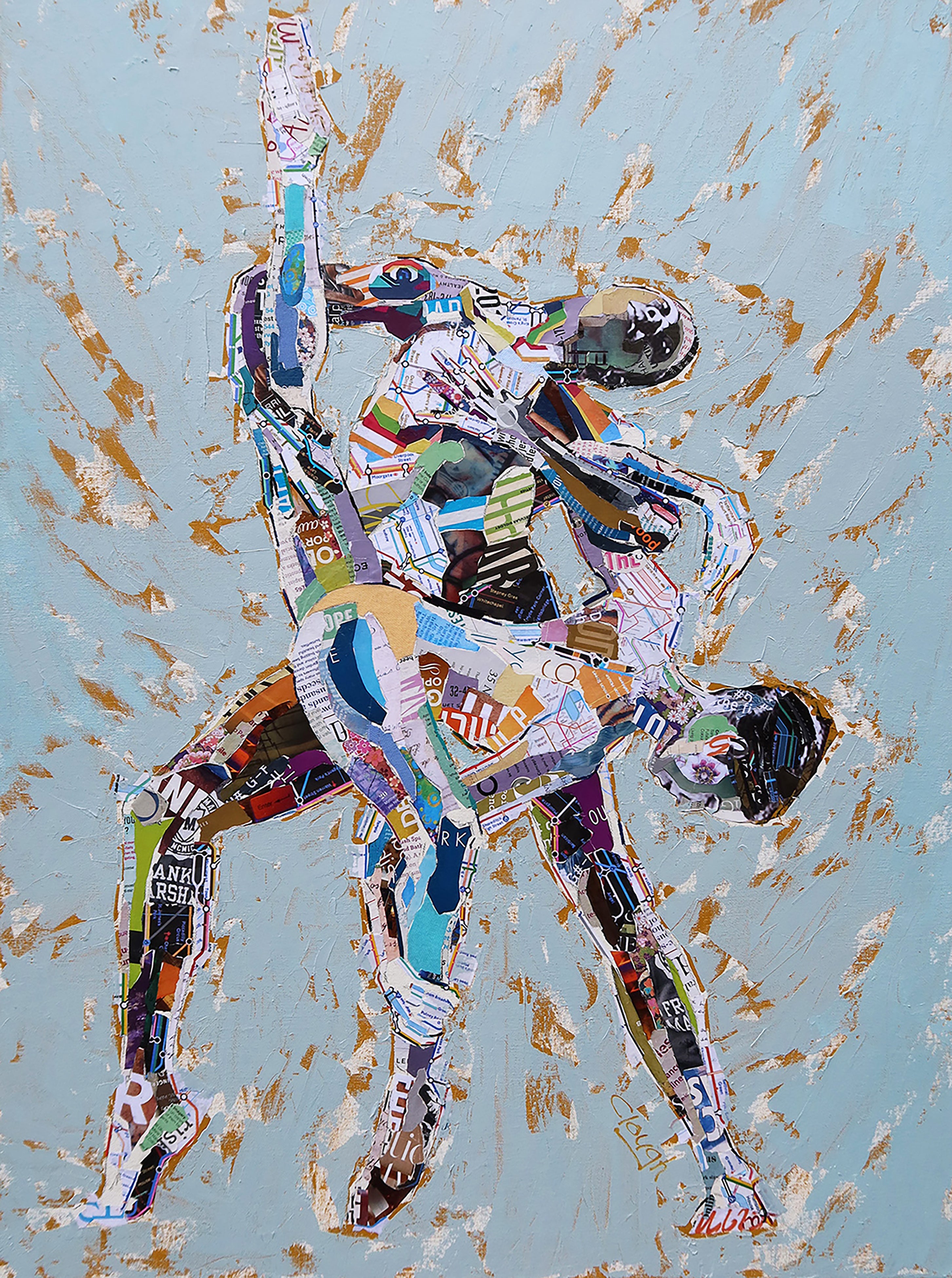 “I find working with collage succours with spontaneous reactions to how I observe and feel the World around me. It keeps me away from realism yet still portrays those fundamental qualities. More importantly collage depicts a great sense of movement as a crucial element of human perception and experience as well as unusual visual angles”.