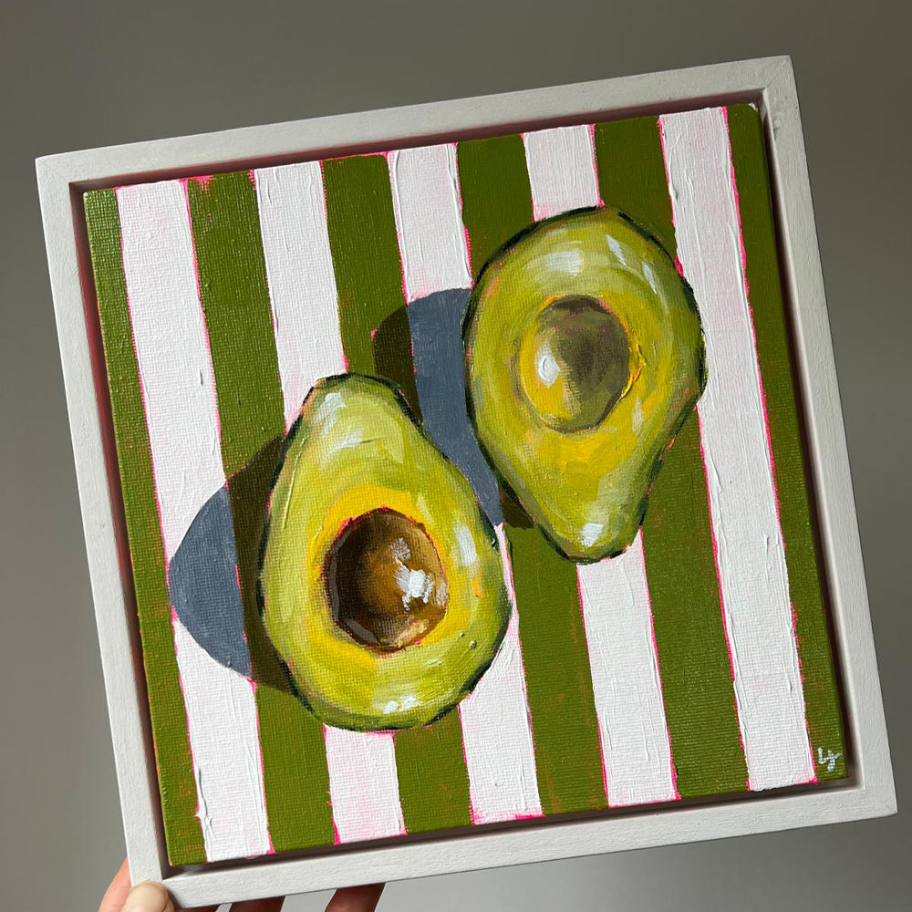 A striking artwork to catch the eye. The greens a complemented beautifully by the pink under painting